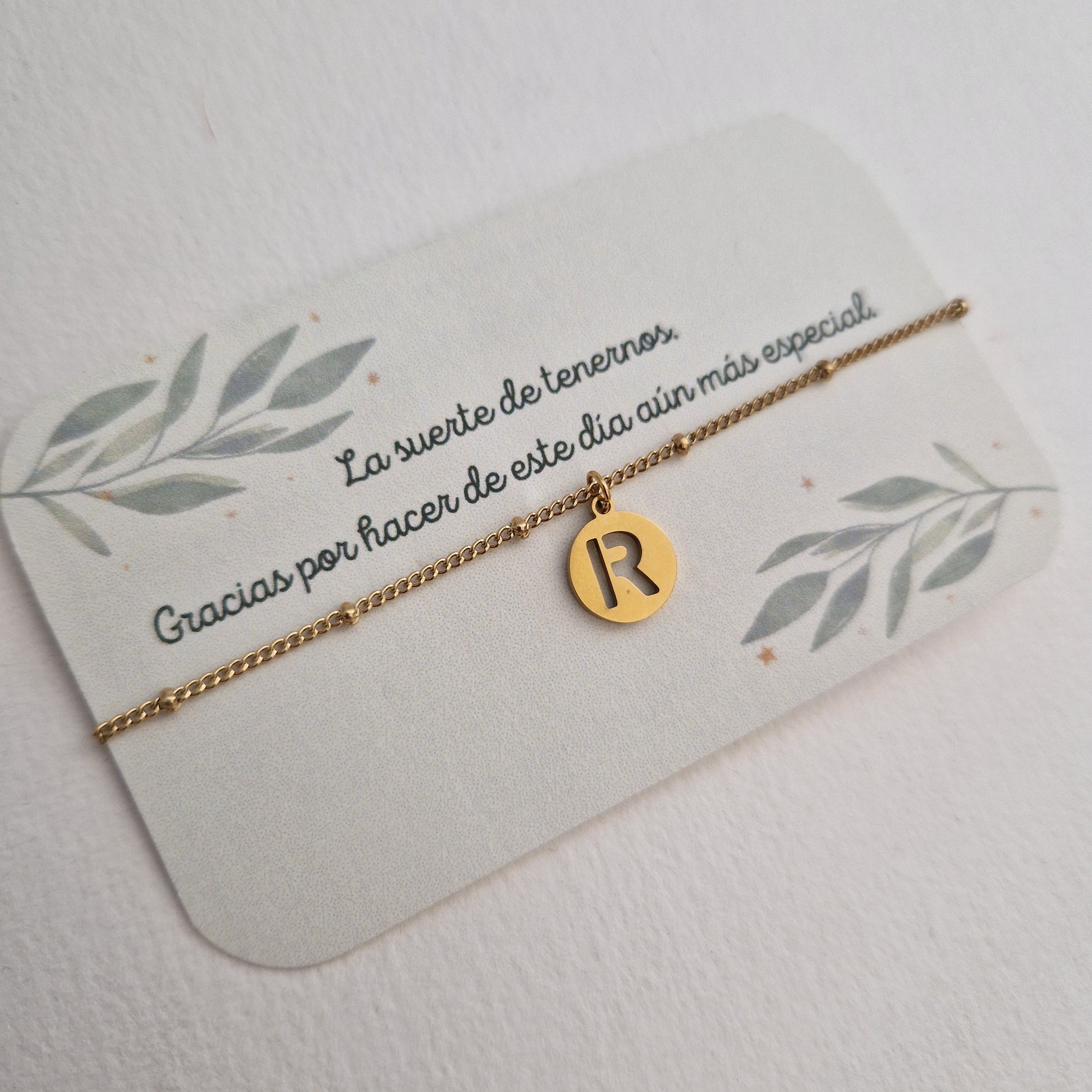 Esta pulsera de acero personalizada, con inicial, es el regalo perfecto para cualquier ocasión. Incluye una tarjeta con la dedicatoria que tú quieras y su sobre individual. ¡Sorprende a tus seres queridos con este detalle único y especial!